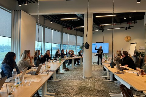 In de middag stond een interactieve AI-workshop onder leiding van Vianne Scharloo van One Person Aigency op het programma. Deelnemers maakten kennis met verschillende AI-tools voor uiteenlopende toepassingen en gingen zelf aan de slag met prompten. Daarbij werd duidelijk dat effectief werken met AI minder draait om ‘mooi schrijven’ en meer om structuur aanbrengen. De belangrijkste les van de dag: beginnen en doen.