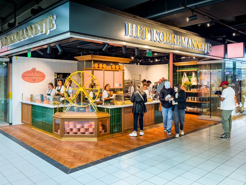 Shopconcept - ‘Het Koekemannetje’, bekend als social mediafenomeen in de Negen Straatjes in Amsterdam, heeft nu ook op Schiphol een locatie. Deze week is een tweede vestiging van deze koekjeswinkel geopend op Schiphol Plaza.